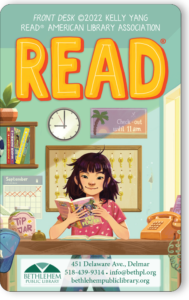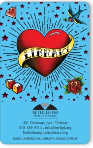 Bethlehem Public Library offers an assortment of library card styles that are available for you to select as your own. All of our designs are printed upon request and use your existing library card number and account information. (Custom cards are only available to BCSD residents at this time.)